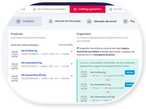 Sempre que o valor da encomenda mínima não for atingido, a Hiper Retail fará uma sugestão para adicionar novos produtos à encomenda até garantir o seu envio gratuito.